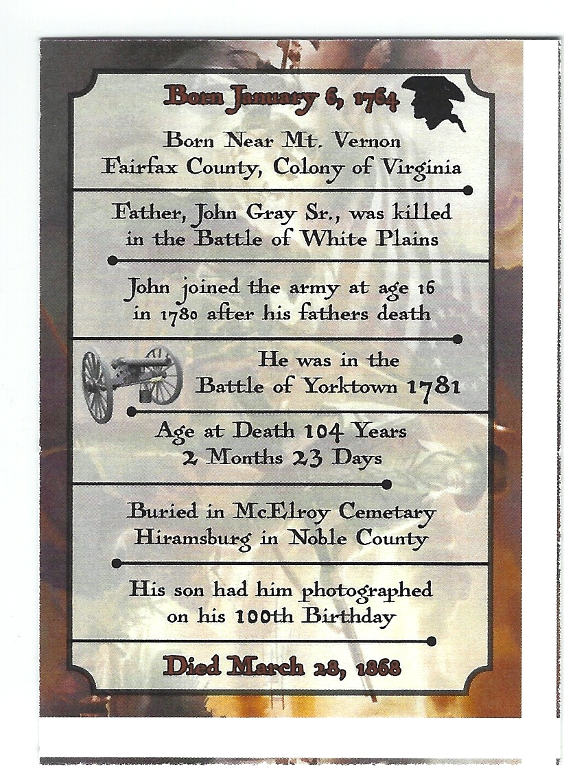 www.WashOGS.org John Gray - Verified Last Surviving American Revolutionary Veteran |