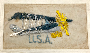 JUN, Sharing. Lila Hill shared an embroided postcard from World War I.
